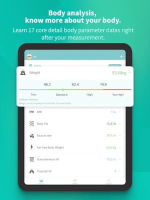 Fitdays आपको आपके शरीर की संरचना की गहन और सटीक समझ प्रदान करके एक स्वस्थ और बेहतर जीवन की दिशा में मार्गदर्शन करता है। यह सिर्फ एक आंकड़ा उपकरण नहीं, बल्कि आपकी स्वास्थ्य यात्रा का एक व्यक्तिगत साथी है जो आपको हर कदम पर सशक्त बनाता है। अपनी शारीरिक स्थिति को तुरंत और स्पष्ट रूप से जानने के लिए तैयार हो जाइए, ताकि आप अपने लक्ष्यों को प्रभावी ढंग से प्राप्त कर सकें।