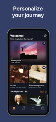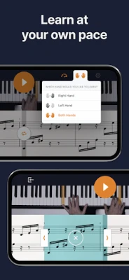 flowkey आपके पियानो अभ्यास को इंटरैक्टिव और अविश्वसनीय रूप से प्रभावी बनाता है, आपको तुरंत प्रतिक्रिया प्रदान करता है। 'लूप' सुविधा के साथ किसी भी गाने के विशिष्ट खंडों का अभ्यास करें जब तक कि आप उनमें महारत हासिल न कर लें। 'हैंड चुनें' आपको दाएं या बाएं हाथ के नोट्स का अलग-अलग अभ्यास करने की स्वतंत्रता देता है। 'प्रतीक्षा मोड' आपके खेलने का धैर्यपूर्वक इंतज़ार करता है, यह सुनिश्चित करता है कि आप सही नोट्स और कॉर्ड्स बजाएँ, चाहे आप अपने डिवाइस के माइक्रोफ़ोन या ब्लूटूथ/MIDI का उपयोग कर रहे हों। इसके अतिरिक्त, पेशेवर पियानोवादकों के 'वीडियो' देखें जो उंगलियों की सटीक स्थिति और तकनीक दिखाते हैं, और 'जस्ट प्ले' मोड में पूरे टुकड़े का आनंद लें, जहां flowkey आपकी गति के साथ तालमेल बिठाता है। टैबलेट उपयोगकर्ता 'फुल शीट म्यूजिक व्यू' में पारंपरिक शीट म्यूजिक पढ़ने का अभ्यास भी कर सकते हैं।