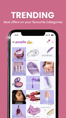 Purplle ऐप सौंदर्य और कॉस्मेटिक उत्पादों के लिए एक किफायती मंच है। इसमें गुड वाइब्स, NY बे, डर्मडॉक, आल्प्स गुडनेस, मामाअर्थ, लैक्मे, मेबेलीन, लोरियल, शुगर कॉस्मेटिक्स जैसे कई शीर्ष ब्रांड उपलब्ध हैं।