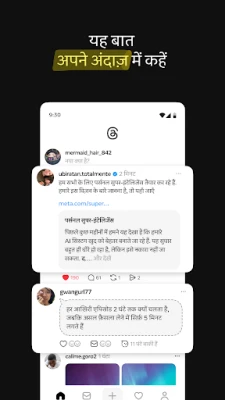 Threads एक ऐसा गतिशील मंच है जहाँ दुनिया भर के लोग एक साथ आकर हर तरह के विचारों और संवादों में गोता लगाते हैं। चाहे आपकी रुचि किसी भी विषय में हो—आज के गरमागरम मुद्दों से लेकर कल के उभरते रुझानों तक—यह वो जगह है जहाँ आप अपनी पसंद के रचनाकारों और समान सोच वाले व्यक्तियों से जुड़ सकते हैं। Threads आपको अपनी आवाज़ बुलंद करने और अपने विचारों, राय तथा रचनात्मकता को अपनी विश्वसनीय कम्युनिटी के साथ साझा करने का अवसर प्रदान करता है।